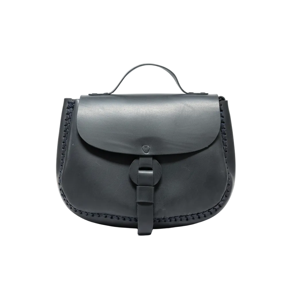 The Pony Saddle in Black is crafted in full-grain leather with a true matte finish — a refined alternative to glossy, over-processed black bags. The structured silhouette holds its shape while the hand-stitched detailing along the edges adds quiet character.