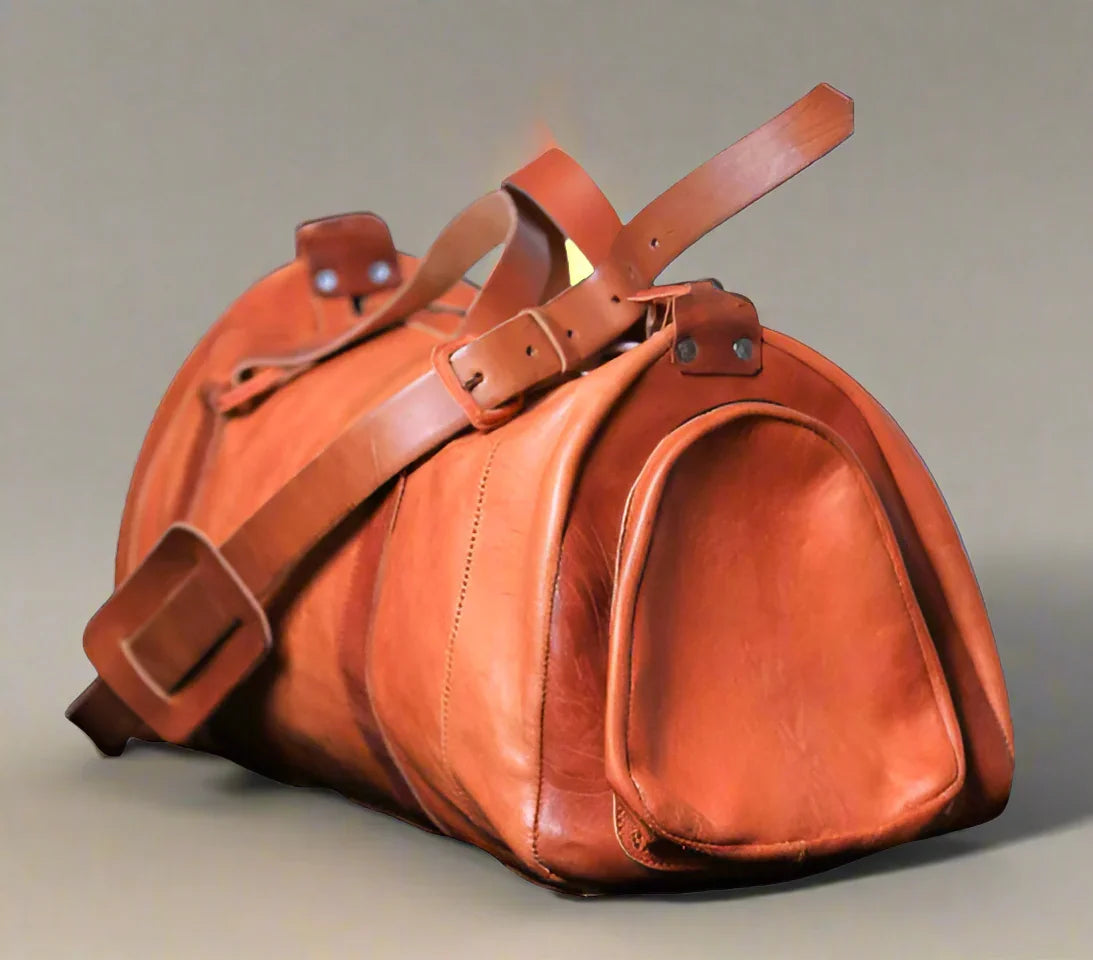 The Santos Duffel is travel elevated. Handcrafted from thick, vegetable-tanned, full-grain leather, its warm light brown patina and tubular silhouette make it a striking companion for weekends away, overnight stays, or spontaneous adventures. More than a bag, Santos is a statement of refined travel — durable enough for the road, polished enough for the lounge.