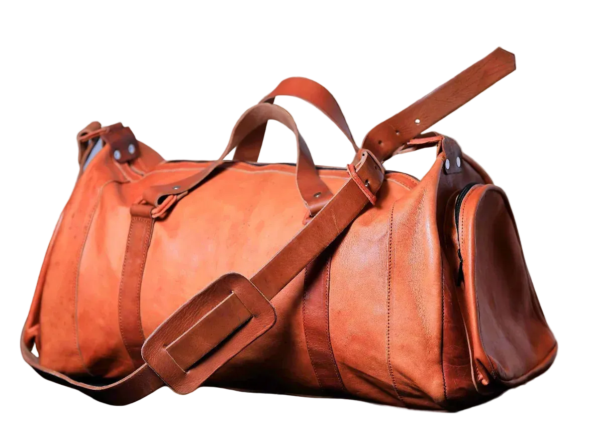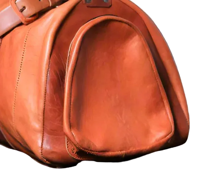 The Santos Duffel is travel elevated. Handcrafted from thick, vegetable-tanned, full-grain leather, its warm light brown patina and tubular silhouette make it a striking companion for weekends away, overnight stays, or spontaneous adventures. More than a bag, Santos is a statement of refined travel — durable enough for the road, polished enough for the lounge.